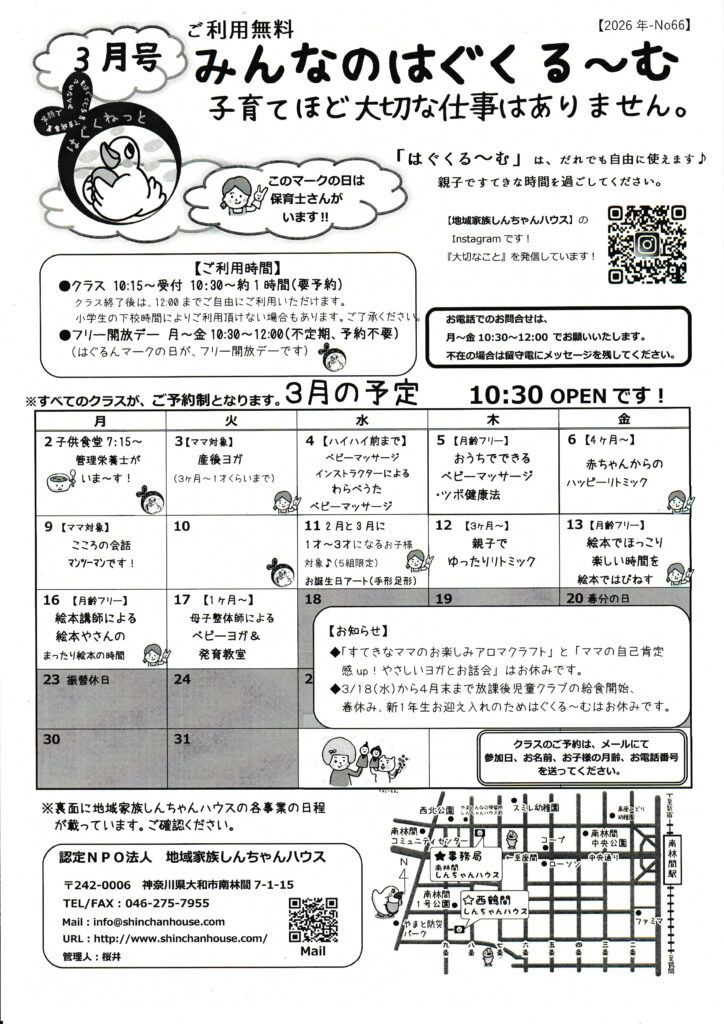 日程:はぐくる~む通信またはトップページをご確認ください。
